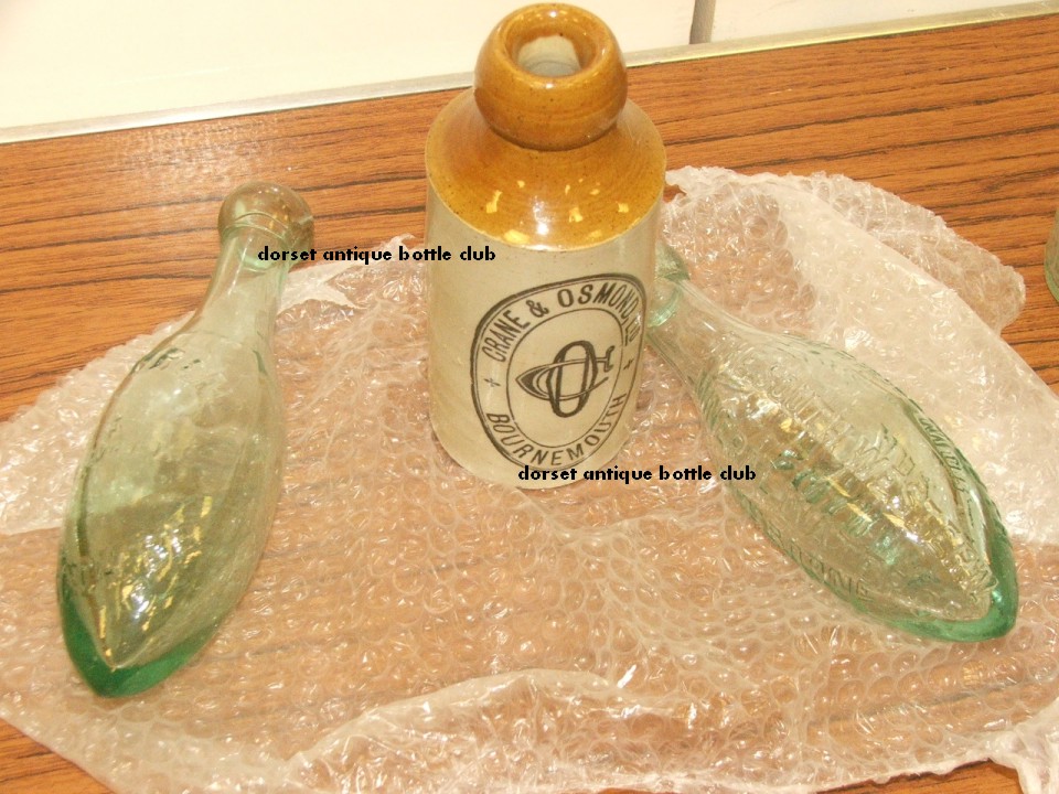 Your favourite bottle a green Hattat Barret and Elers Stick patent mineral water, Small Collis Gillingham blue lip acme reliance patent, free blown cylinder and dark amber Douglas Legg Weymouth skittle.